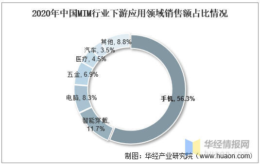 目前國內(nèi)MIM技術(shù)的應(yīng)用主要集中在電子產(chǎn)品領(lǐng)域,其他領(lǐng)域的應(yīng)用占比相對較少。從銷售額角度看,2020年我國MIM產(chǎn)品的應(yīng)用分布中,手機(jī)/智能穿戴/電腦三大應(yīng)用場景分別占56.3%/11.7%/8.3%。其中手機(jī)繼續(xù)保持最大份額,但同比略下降2.8pcts,電腦、智能穿戴領(lǐng)域產(chǎn)品占比則有增加,分別同比+3.5/+3.6pcts。其他應(yīng)用領(lǐng)域方面,汽車、五金、醫(yī)療分別占比3.5%/6.9%/4.5%,分別同比-6.8/-5.1/+1.0pct。