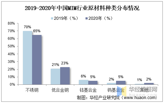 2019-2020年中國MIM行業(yè)原材料種類分布情況